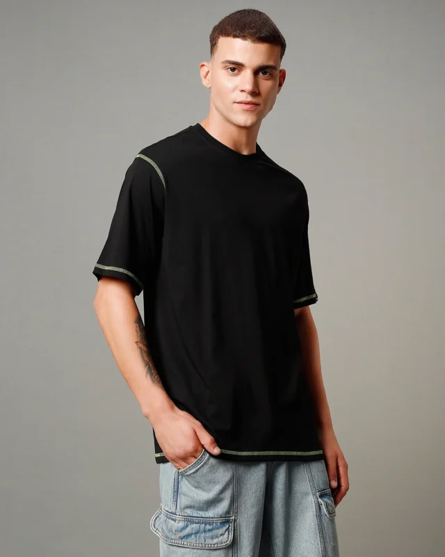 Men’s Black & Orange Tie & Dye Oversized T-shirt