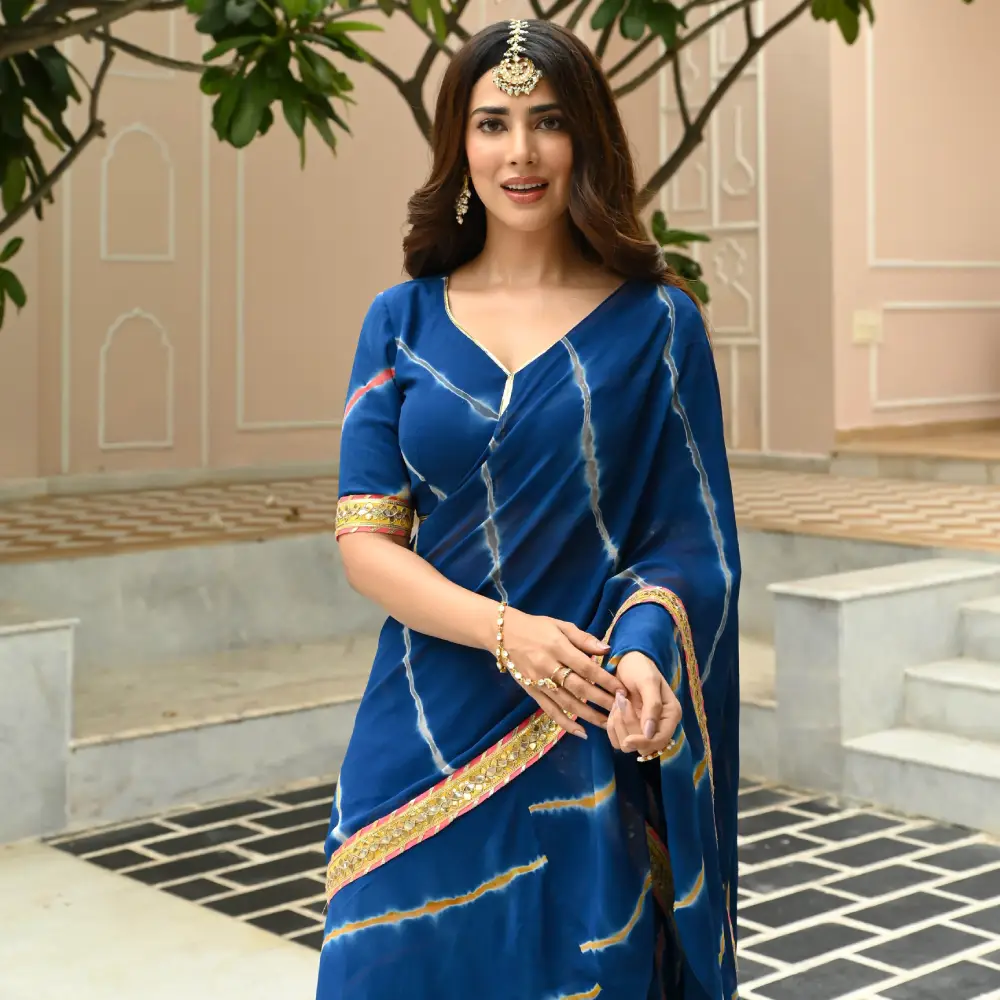 Blue Leheriya Draped Saree